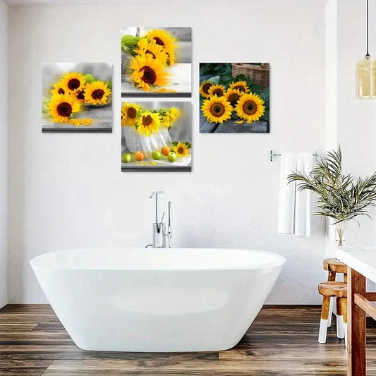 4pcs Sunflower Wall Art Decor, Vase Wall Art Canvas Framed