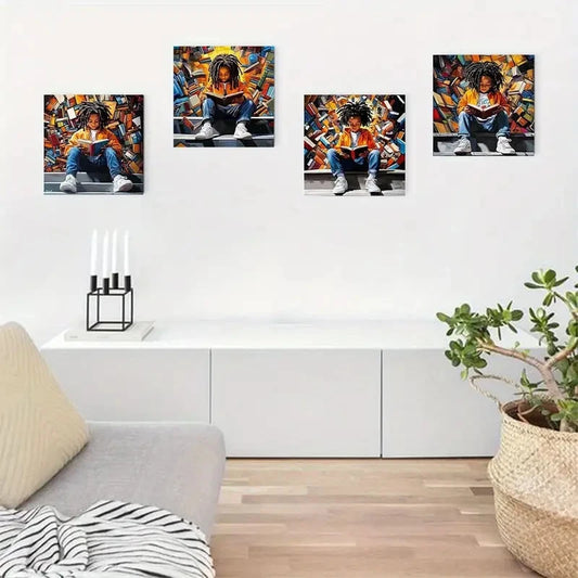 4pcs Vibrant African American Joy Theme Wall Art Canvas Framed