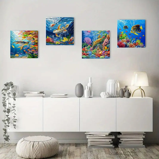 4pcs Ocean Sea Turtle Pictures Wall Art Canvas Framed