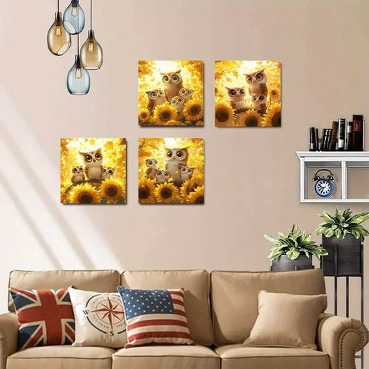 4pcs Lovely Owls Big Eyes OB Wall Art Canvas Framed