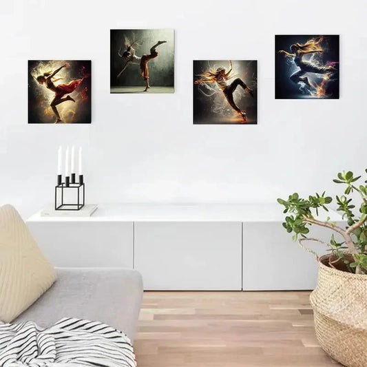 4pcs Vibrant Abstract Dancers In Flames Design Wall Art Canvas Framed