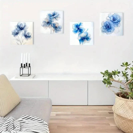 4pcs Modern Blue Floral Wall Art Canvas Framed