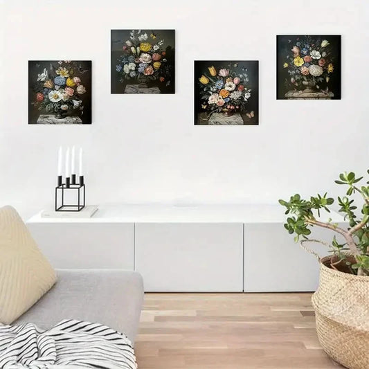 4pcs Colorful Wildflower Elegant Modern Deco Wall Art Canvas Framed