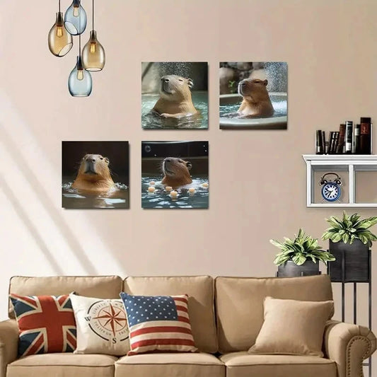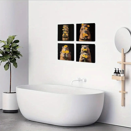 4pcs Capybara Bath Time Picture Wall Art Canvas Framed
