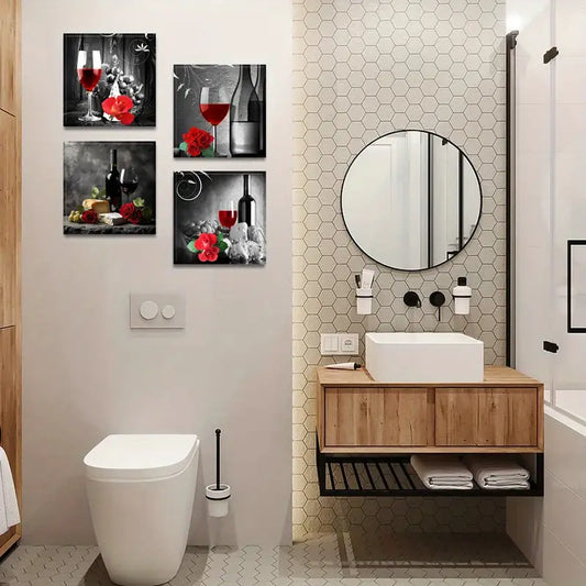4pcs Red Wine Poster, Cheese RWC Wall Art Canvas Framed