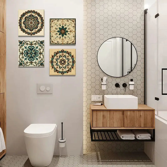 4pcs Mandala Floral Wall Decor, Intricate Wall Art Canvas Framed