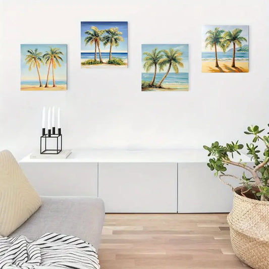 4pcs Tropical Palm Trees Plaque Canvas Framed