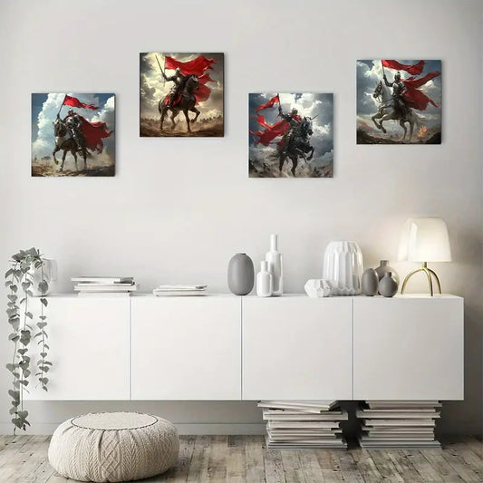 4pcs Heavy Cavalry Horse Armor Wall Art Canvas Framed
