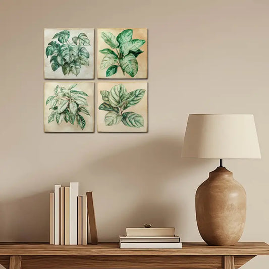 4pcs Green Leaves Decor Wall Art Canvas Framed