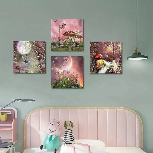 4pcs Nautical Lighthouse Enchanted Fairy Tale Wall Art Canvas Framed