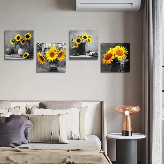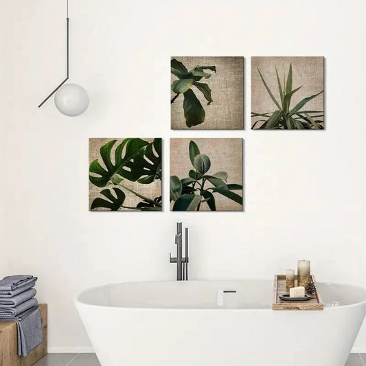 4pcs Bathroom and Home Office Wall Art Canvas Framed