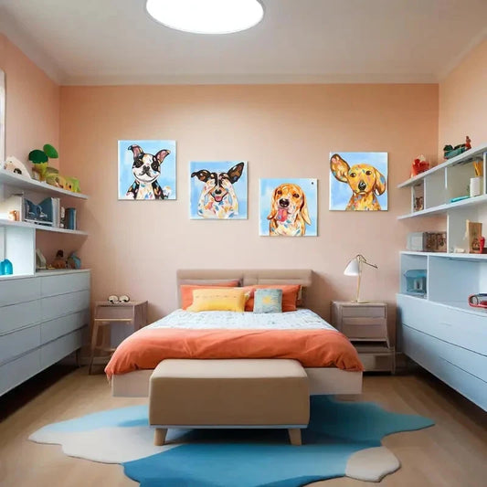 4pcs Puppy Artwork Dog Painting Funny Animal Wall Art Canvas Framed