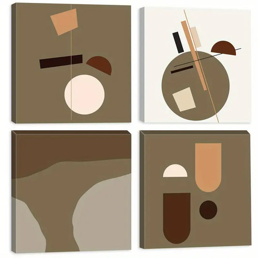 4pcs Geometric Brown & Beige Wall Art Canvas Framed