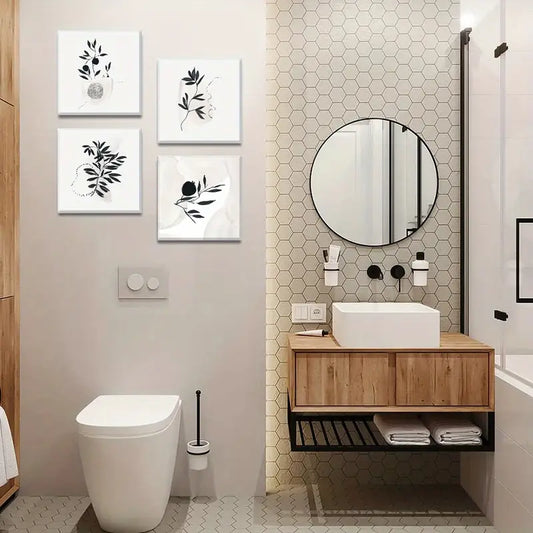 4pcs Abstract Leaf & Mountain Canvas Wall Art Canvas Framed