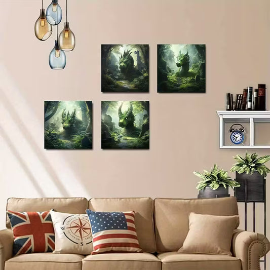 4pcs Enchanted Forest Scenes Wall Art Canvas Framed