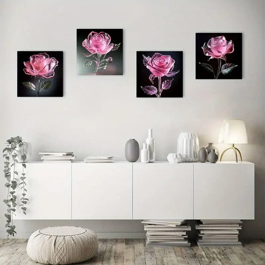 4pcs Pink Ros Art Deco Classic Retro Style Wall Art Canvas Framed