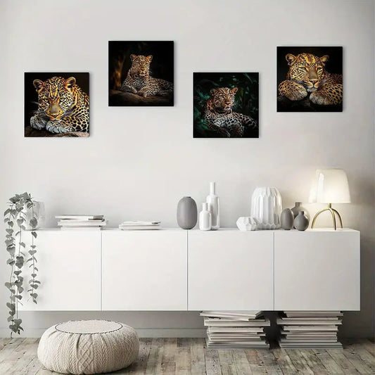 4pcs Golden Leopard Print Wall Art Canvas Framed