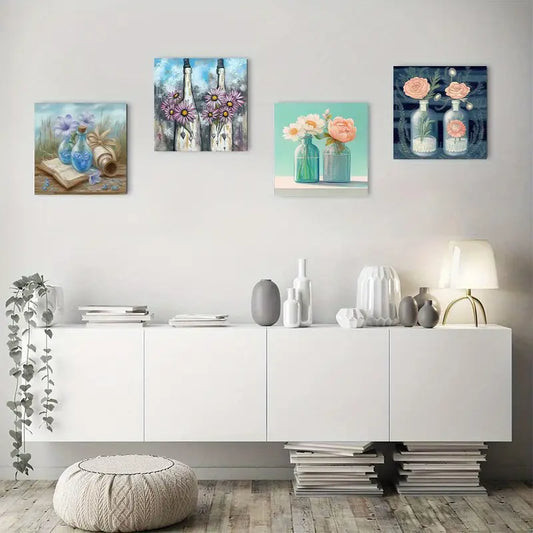 4pcs Vibrant Dragon & Floral Canvas Art Prints Wall Art Canvas Framed