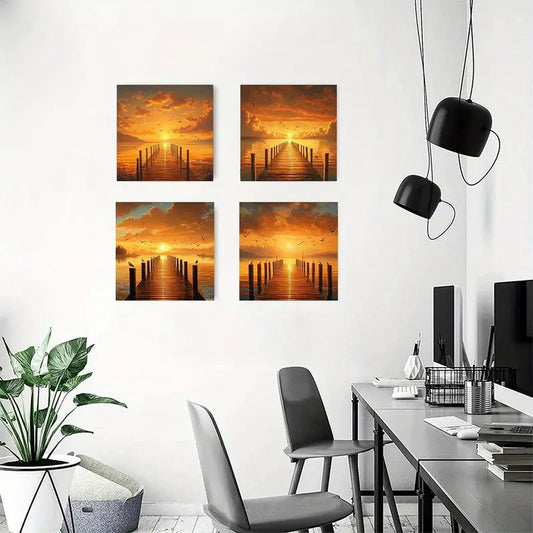 4pcsBeautiful Countryside View Wall Art Canvas Framed
