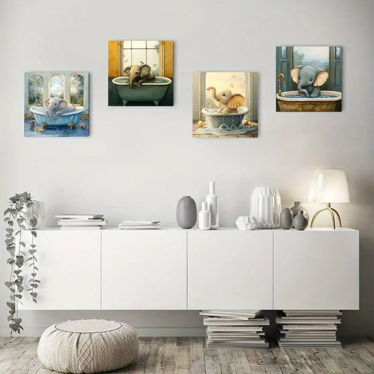4pcs Elephan Elegant Modern Wall Art Canvas Framed