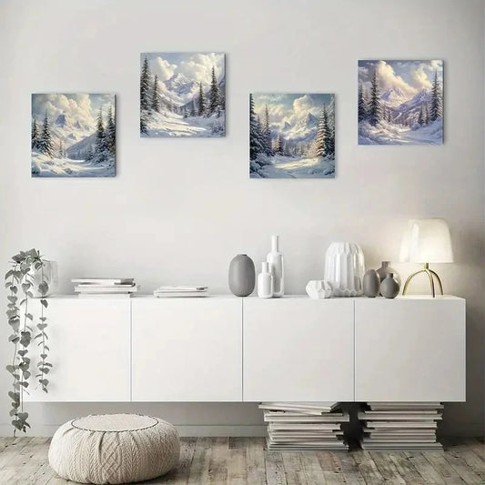4pcs Waterfall rainbow stoneWall Art Canvas Framed