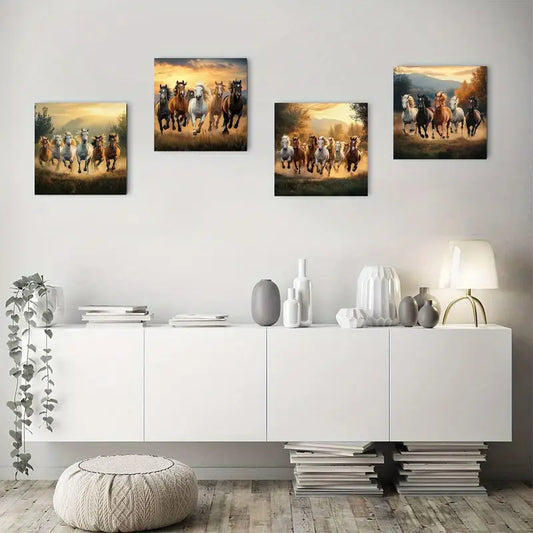 4pcs Sunset Seven Lucky Horse Canvas Wall Art Canvas Framed