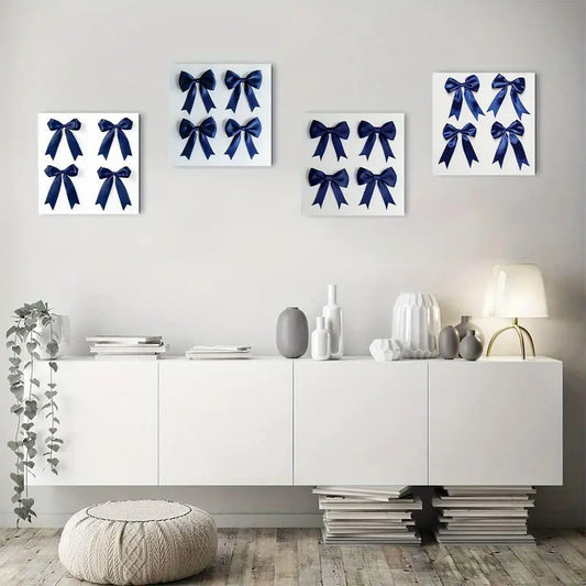 4pcs Navy Blue Bow er Wall Art Canvas Framed