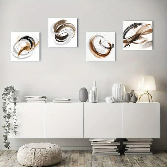 4pcs Swirls in Black, White, Gray & Beige L Wall Art Canvas Framed