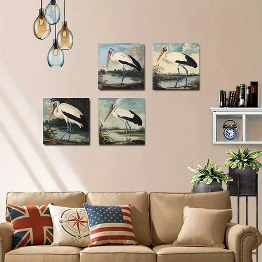 4pcsElegant Long-Billed BirdWall Art Canvas Framed