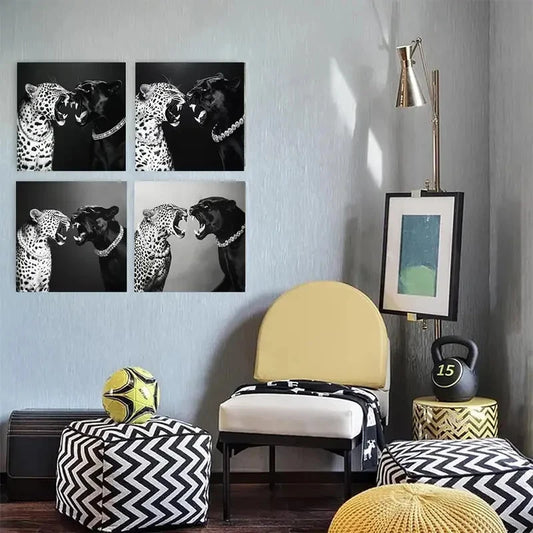 4pcsBlack and white fun cheetahWall Art Canvas Framed