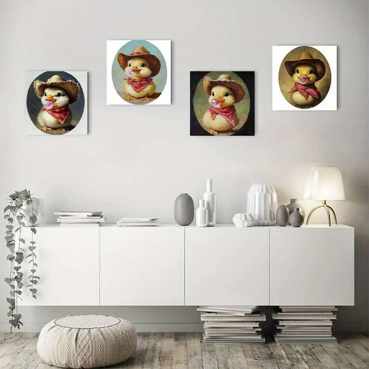 4pcs Vintage Western Cowboy Duck Wall Art Canvas Framed