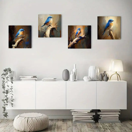 4pcs Blue Bird Nest Canvas Art Prints Wall Art Canvas Framed