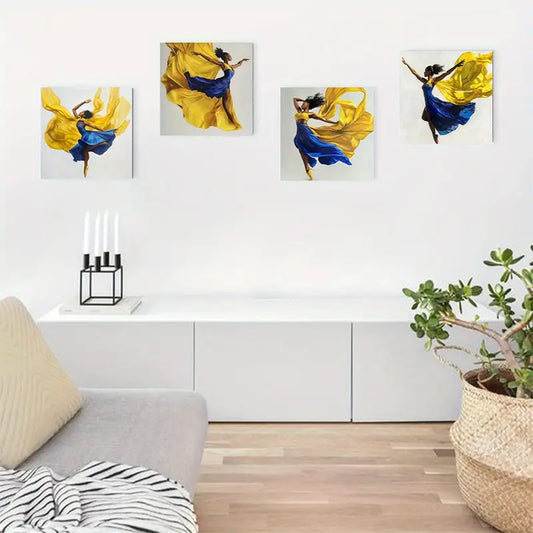 4pcs Ballerina in Blue & Yellow Tutu FG Wall Art Canvas Framed