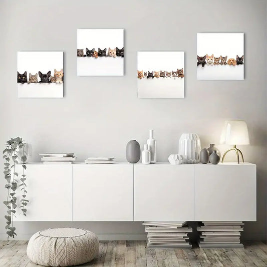 4pcs Adorable Cute Cat Canvas Wall Art Canvas Framed