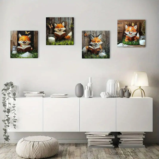 4pcs Charming Fox Abstract Canvas Wall Art Canvas Framed