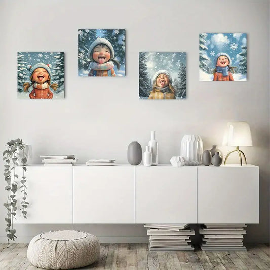 4pcs Girl Snowflake Grove Wall Art Canvas Framed