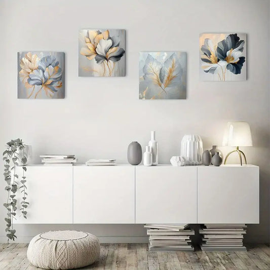 4pcs Golden & Blue Abstract Canvas Wall Art Canvas Framed
