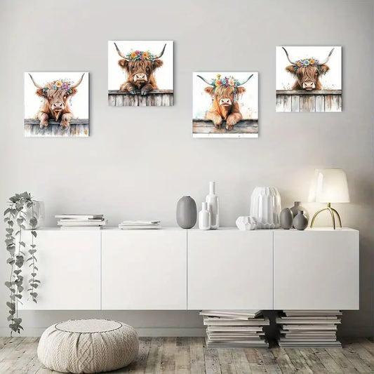 4pcs Garland cow Modern Wall Art Canvas Framed