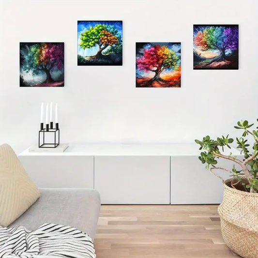 4pcs Abstract Colorful Tree Vintage TYT Wall Art Canvas Framed