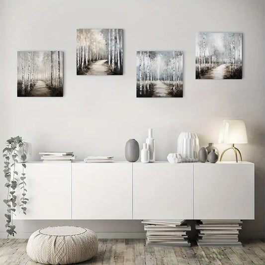 4pcs Gray Birch Forest Poster Modern Wall Art Canvas Framed