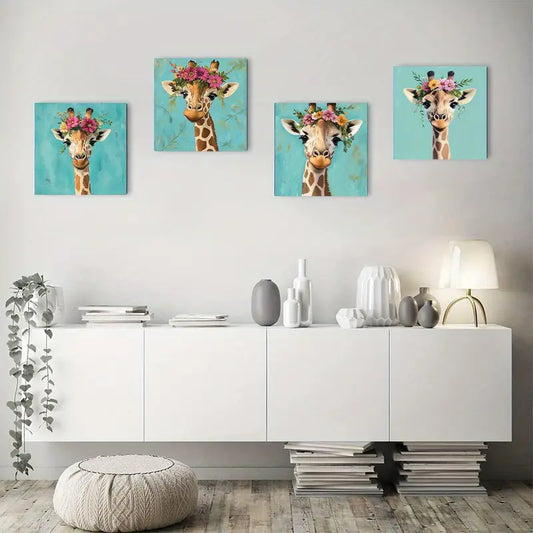 4pcs Vintage Giraffe Canvas Wall Art Canvas Framed