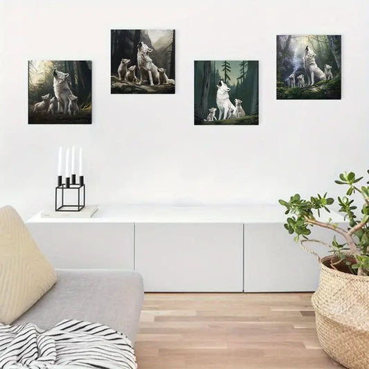 4pcs Beautiful Mother Wolf With Pup Wall Art Canvas Framed