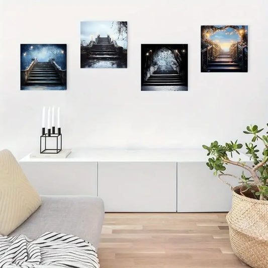 4pcs Blue Fairytale Mystical Fairy Staircase Scenes Wall Art Canvas Framed
