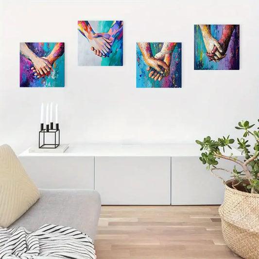 4pcs Vibrant Hand-in-Hand Design DF Wall Art Canvas Framed