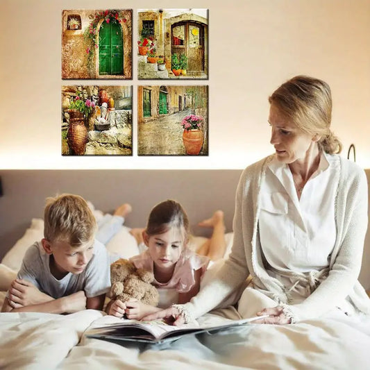 4pcs Elegant Bicycle Bunny Wall Art Canvas Framed