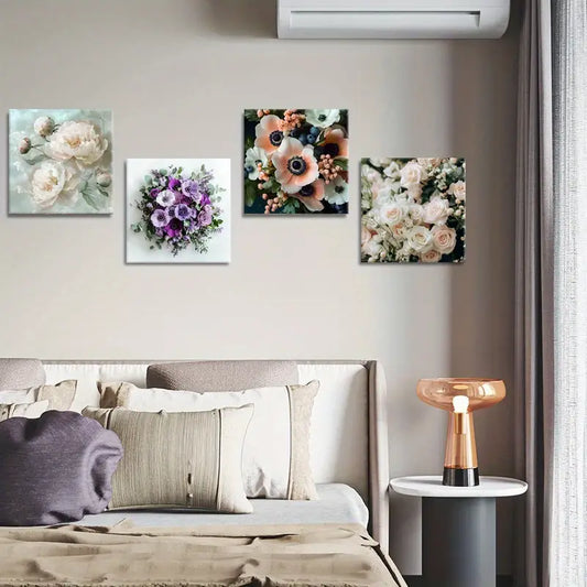 4pcs Romantic Bouquet Painting PB Wall Art Canvas Framed