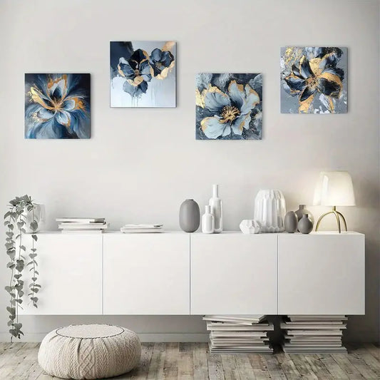4pcs Blue Garde Elegant Modern Wall Art Canvas Framed