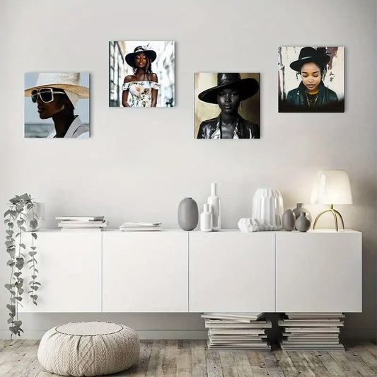 4pcs Black & Golden Female Portrait Wall Art Canvas Framed