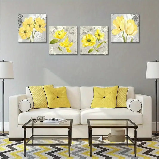 4pcs Yellow Flowers Beautiful Wall Art Canvas Framed
