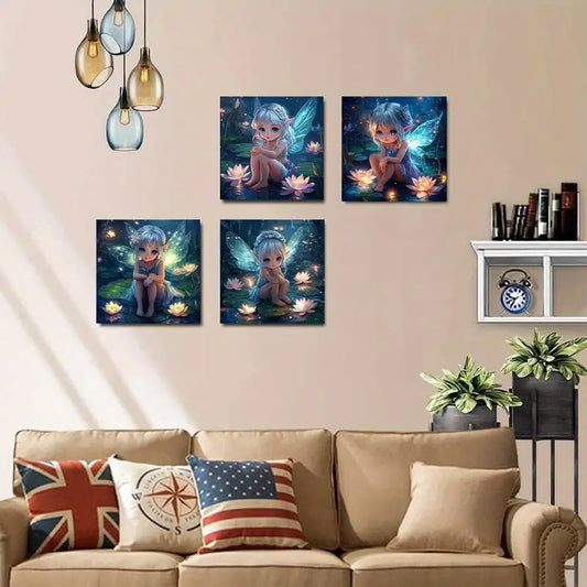 4pcs Whimsical for Lotus & Lily Pads LP Wall Art Canvas Framed